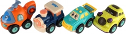 Malé vozidlá, veľká zábava! Plastový dopravný prostriedok na zotrvačník je ideálny pre deti, ktoré milujú autá, autobusy alebo stavebné stroje. Stačí natiahnuť dozadu a pustiť – vozidlo samo vyrazí vpred.