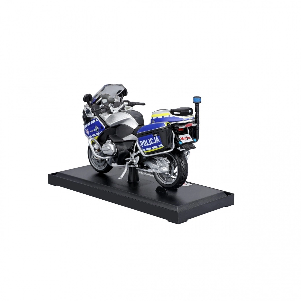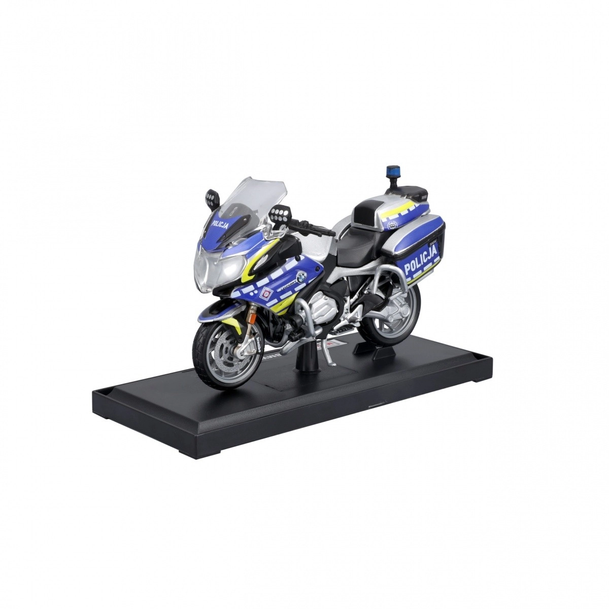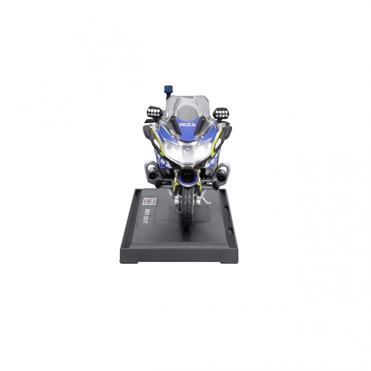 Tento kovový model motocykla poľskej polície je verne spracovaný v mierke 1:18 s veľkou starostlivosťou o detaily a pohyblivým zavesením. Model môže stáť bez základne vďaka výsuvnej nožičke.