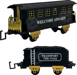 Súčasťou sú dva detailne spracované vozne – uhoľný a osobný. Ľahko sa zapájajú a jazdia hladko po trati.