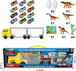 - Veľká prepravka funguje ako mobilný sklad pre menšie vozidlá a dinosauří figúrky
