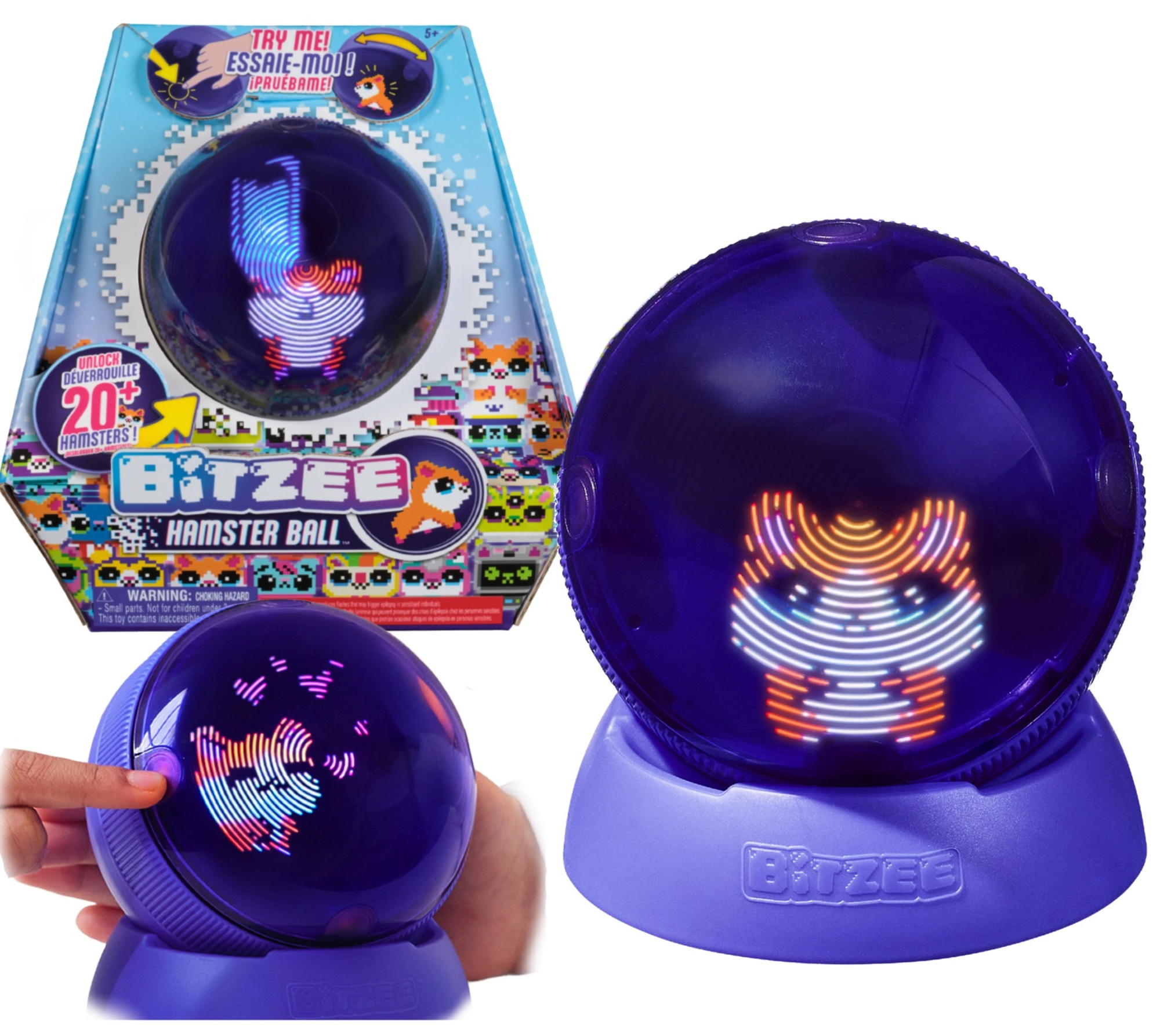 Objavte nové poňatie digitálneho miláčika: BITZEE Hamster Ball kombinuje hmatovú interakciu s pútavými svetelnými efektmi a rozkošnými reakciami. Škrečka môžete kŕmiť, hladkať, kúpať a zabávať na bežeckom kolese – a pritom sledovať, ako rastie od bábätka po dospelého hrdinu a mení sa na Super Bitzee. Hračka funguje bez displeja, takže podporuje kreativitu aj jemnú motoriku.