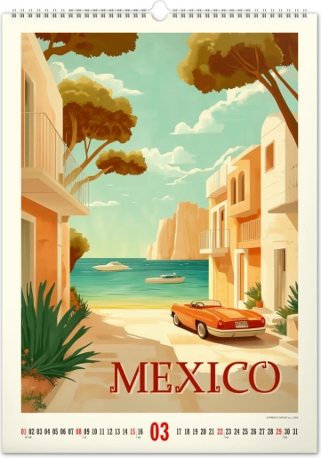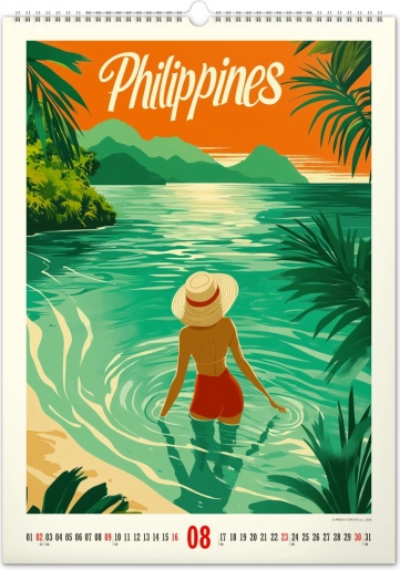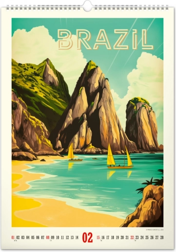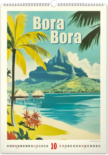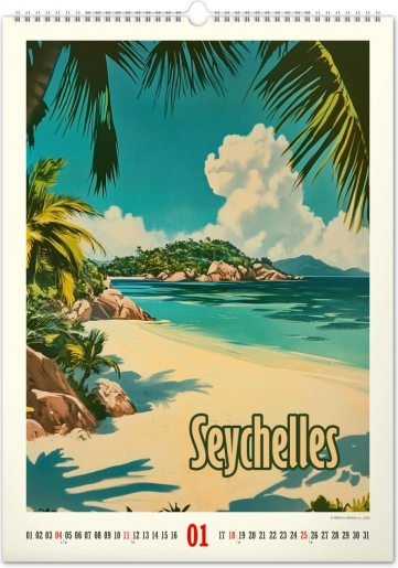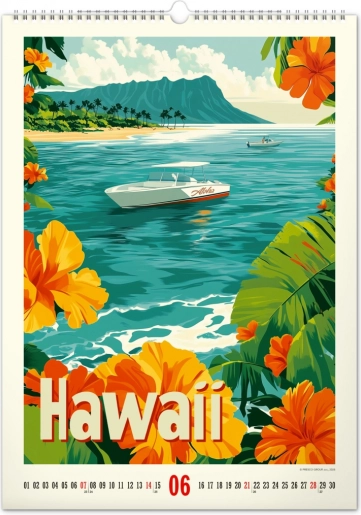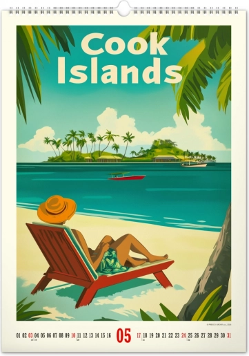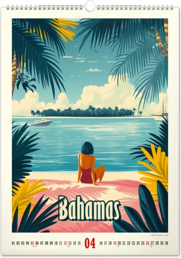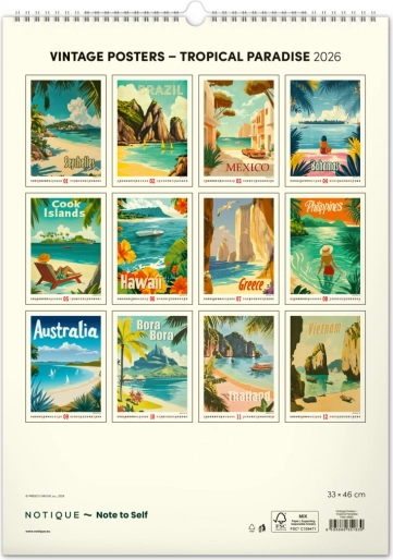 Nastavte si časť tropického raja vo svojom priestore s nástenným kalendárom inšpirovaným vintage plakátmi. Obsahuje: