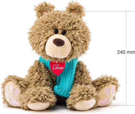 Roztomilý macko Bariboo so šálou, ideálny kamarát pre všetky vekové kategórie. Výška 25 cm, vhodné pre deti od narodenia.