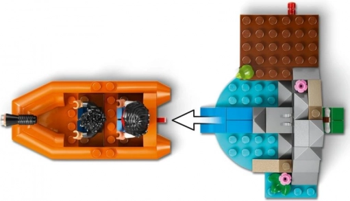 Postavte kôlňu s mólom, pošlite loďku v ústrety dobrodružstvám pomocou vystreľovača a nechajte T-rexa konštrukciu zničiť – potom ju jednoducho znovu zostavte.