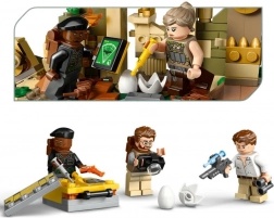 Objavte filmom inšpirovanú akciu v džungli: staroveký chrám s vodopádom ukrýva hniezdo s vajíčkami, tajné priechody a pascu so spúšťacou reťazou. Pohyblivý Spinosaurus (nohy, laby, chvost, hlava a čeľusť) a majestátny Quetzalcoatlus (krídla a čeľusť) pridávajú realistické scény prenasledovania aj záchrany.