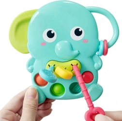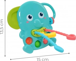 Hračka kombinuje senzorickú stimuláciu s upokojením pri prerezávaní zúbkov. Rôznorodé textúry a posuvné tlačidlá rozvíjajú logické uvažovanie aj presnosť pohybov, zatiaľ čo pohyblivé krúžky na chobote zapájajú zrak a sluch. Priateľský vzhľad slona motivuje deti k samostatnému skúmaniu a radostnej hre.