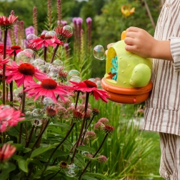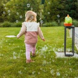 Hračku dopĺňajú farebné svetielka a zvukové efekty, ktoré ešte viac vtiahnu do hry a podporia fantáziu. Uzatvárateľná nádobka bráni rozliatiu roztoku a vďaka pohodlnému držadlu si deti bublifuk ľahko vezmú na záhradu, na ihrisko alebo k starým rodičom.