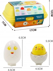 Každé vajíčko sa skladá z dvoch častí: horná škrupina a dolná škrupina spojená s figúrkou kurčiatka. Deti majú za úlohu nielen prispôsobiť správnu škrupinu vajíčka, ale predovšetkým ju prispôsobiť správnemu miestu vo forme. Každé vajíčko má na spodnej strane unikátny geometrický tvar, ktorý zodpovedá jednému otvoru v krabici. Zábavné tváričky sú skvelým spôsobom, ako naučiť deti rozpoznávať a pomenovávať emócie.