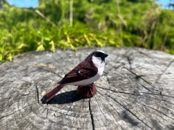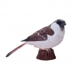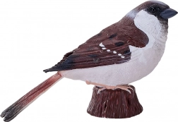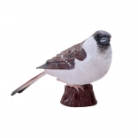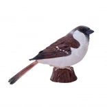 Precízne modelovanie a ručné maľovanie zvýrazňujú realistické črty vrabca – od štruktúry peria po autentické sfarbenie.