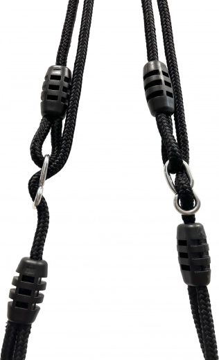 Pletené laná s plastovými zarážkami umožňujú rýchle nastavenie dĺžky až na 200 cm a spoľahlivé zavesenie v rôznych výškach.