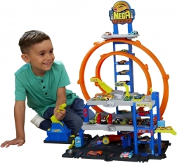 Maxi garáž Hot Wheels City prináša dynamickú hru na troch poschodiach – od umývačky na prízemí cez ručný výťah až po štart z horného podlažia. Odpaľovač pošle autá do dvojitej slučky, prepínače potom určujú, na ktoré poschodie vozidlo dorazí. Skvelé pre samostatnú aj spoločnú hru.