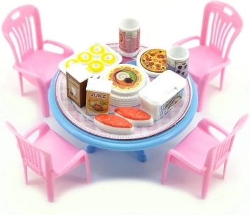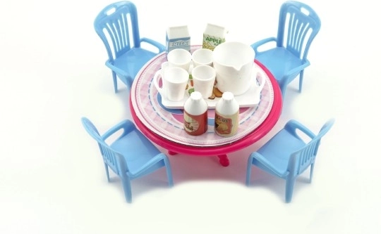 - Nábytok pre bábiky – stôl a stoličky s doplnkami