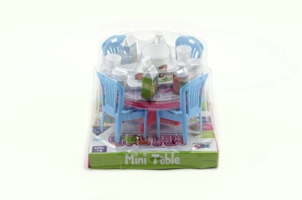 Roztomilá súprava pre bábiky obsahuje plastový stôl a stoličky s doplnkami v kompaktnej veľkosti 12 cm. Skvelo sa hodí do detskej izby a podporuje kreatívnu hru, rozvoj fantázie a rolové hry. K dispozícii sú 3 farebné varianty. Vhodné pre deti od 3 rokov.