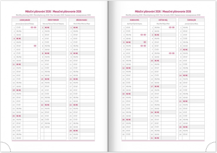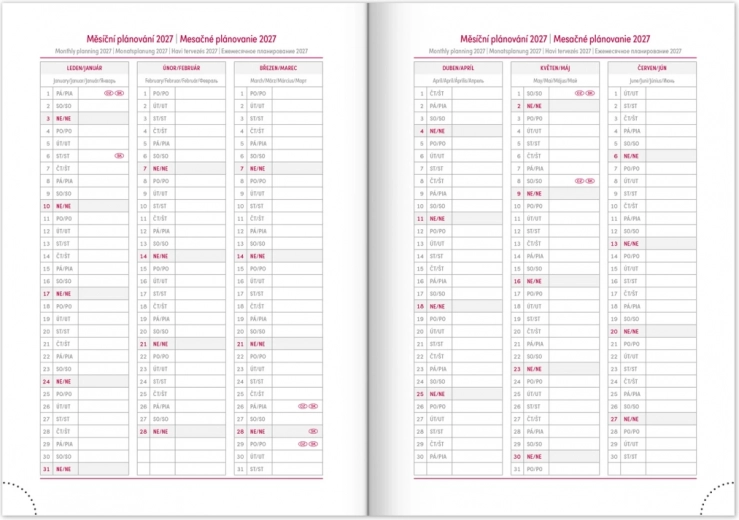 - Mesačný plánovací kalendár na roky 2026 a 2027