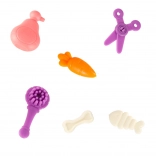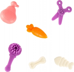 Vybavenie sady zahŕňa hračkárenské kadernícke príslušenstvo a hračkárenské krmivo, ako sú misky, šunka, kosť, rybka a mrkva. Všetky časti sú vyrobené z bezpečného plastu a určené pre deti nad tri roky.
