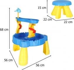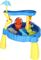 Hrací stolík 2v1 s fontánou je ideálny pre zábavu doma aj na pláži. Vďaka jednoduchej montáži je okamžite pripravený na použitie. Hračka podporuje zmyslovú a motorickú integráciu detí.