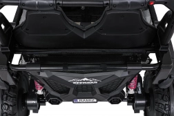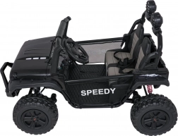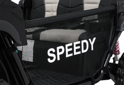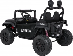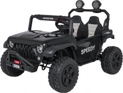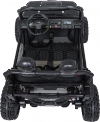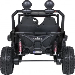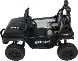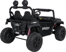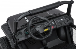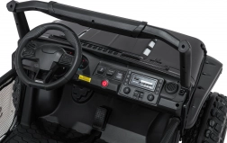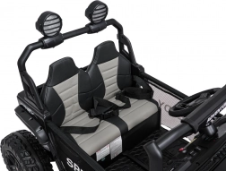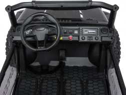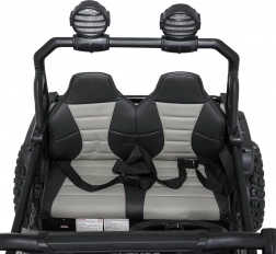 Interiér s dvojitým sedadlom z ekokože, bezpečnostnými pásmi a prehľadnou palubnou doskou ponúka priestor pre dve deti. Bohaté LED osvetlenie (predné svetlá, podsvietená kapota a príprava pre horný svetelný rám na batérie) dodá štýl aj viditeľnosť. Multimediálny panel s USB/AUX/MP3/Bluetooth a tlačidlami klaksónu na volante sa postará o zábavu na cestách.