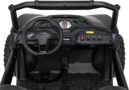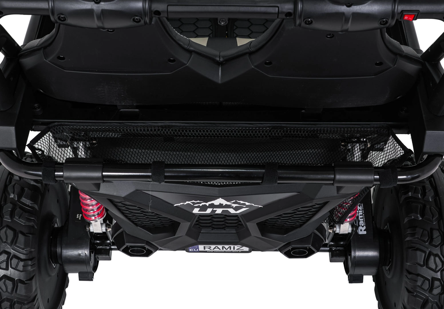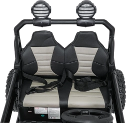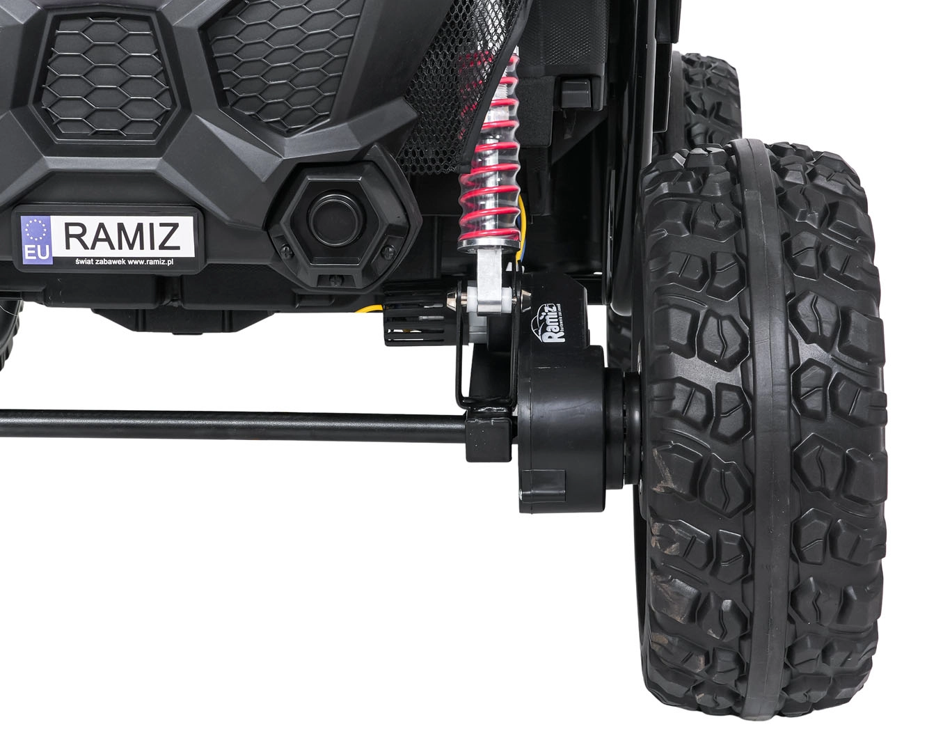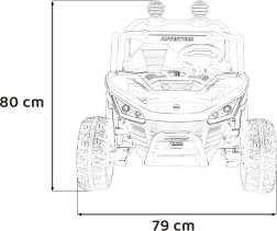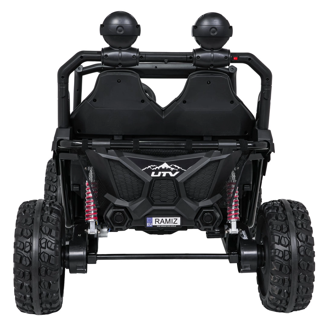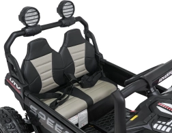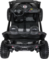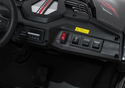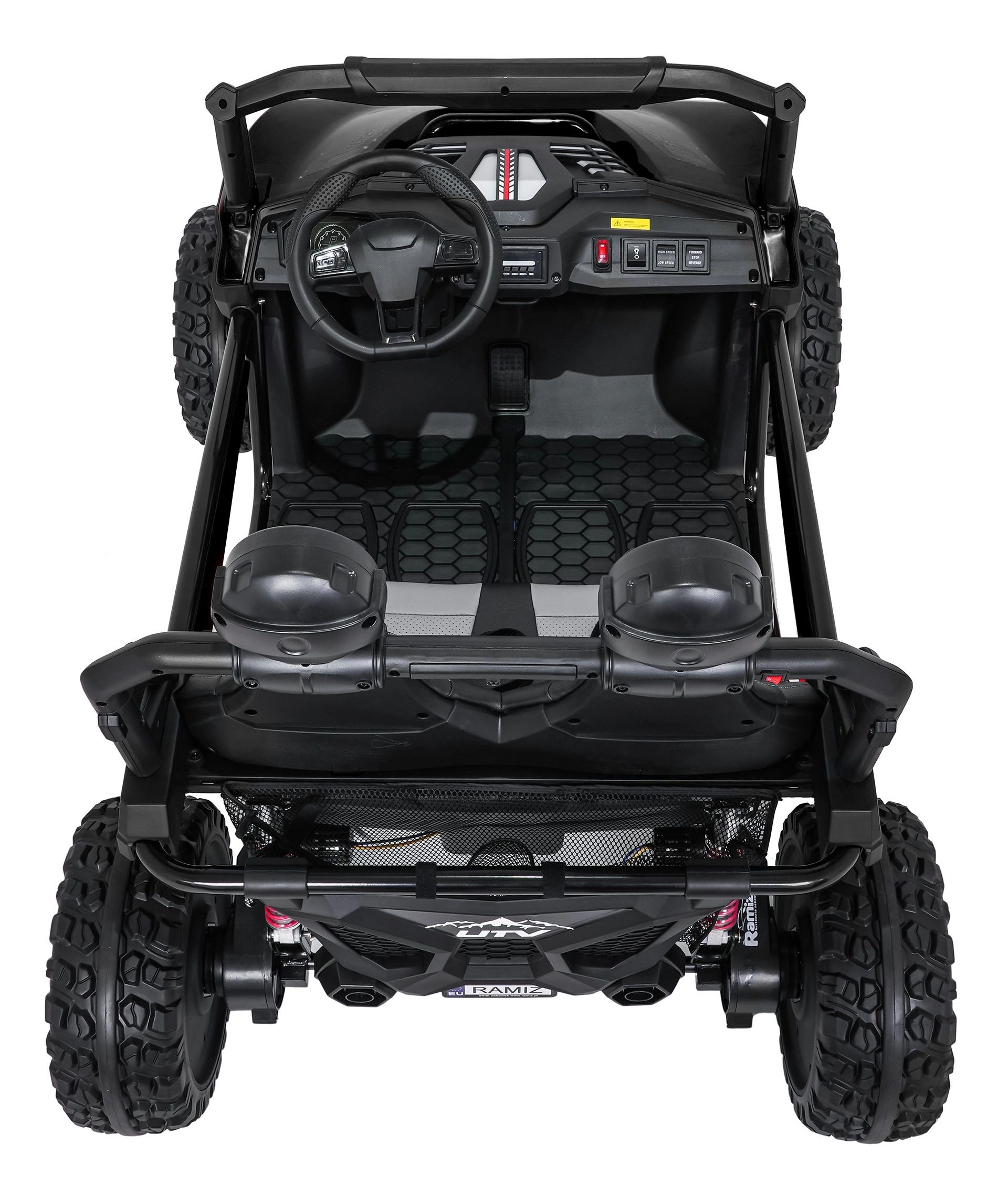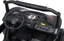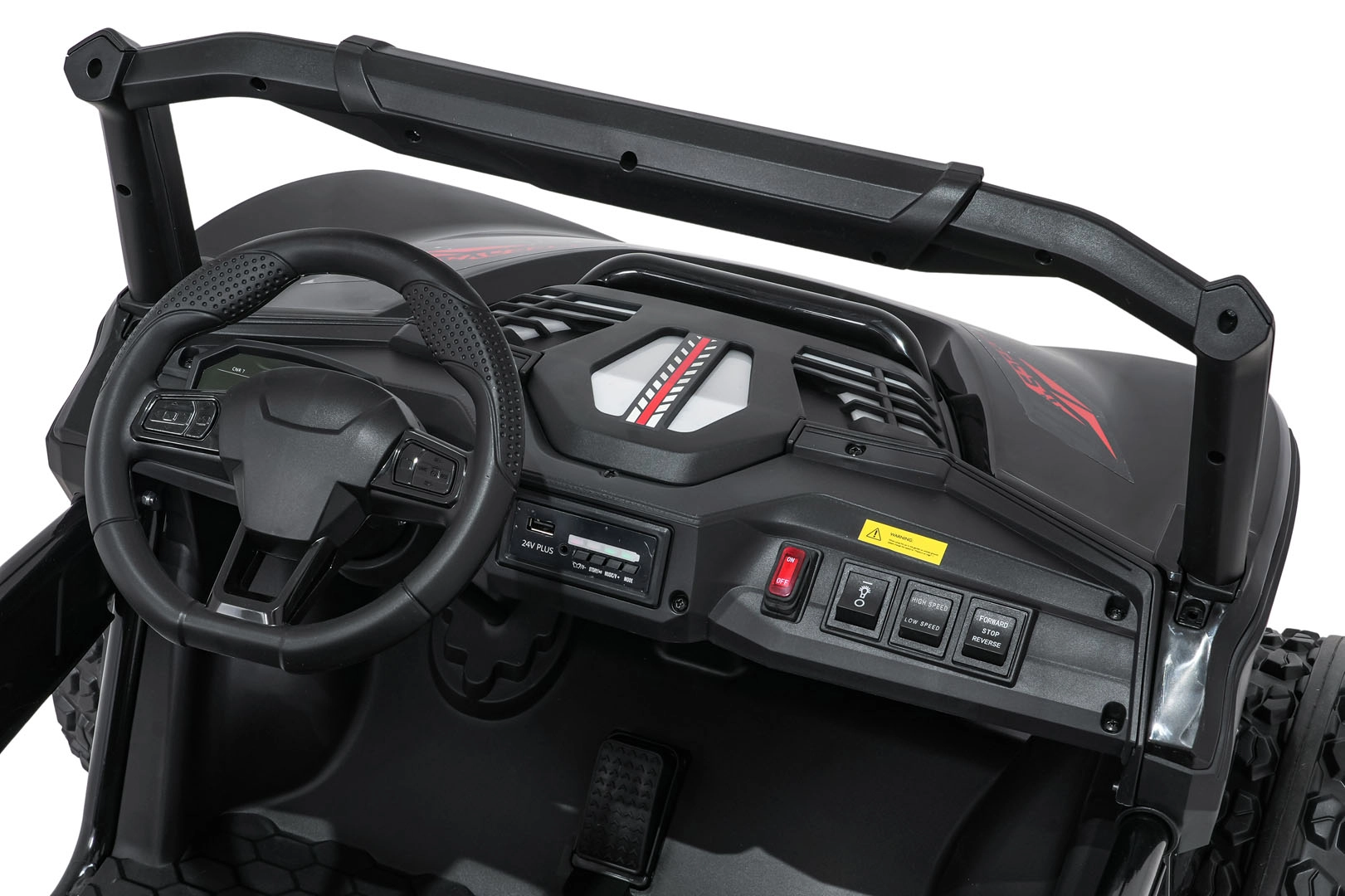 Diaľkový ovládač 2,4 GHz s 3 rýchlosťami a tlačidlom Stop umožní rodičom mať jazdu plne pod kontrolou. Dvojité sedadlo s bezpečnostnými pásmi drží deti pevne a bezpečne.