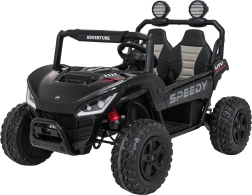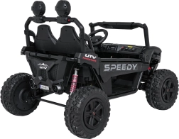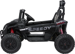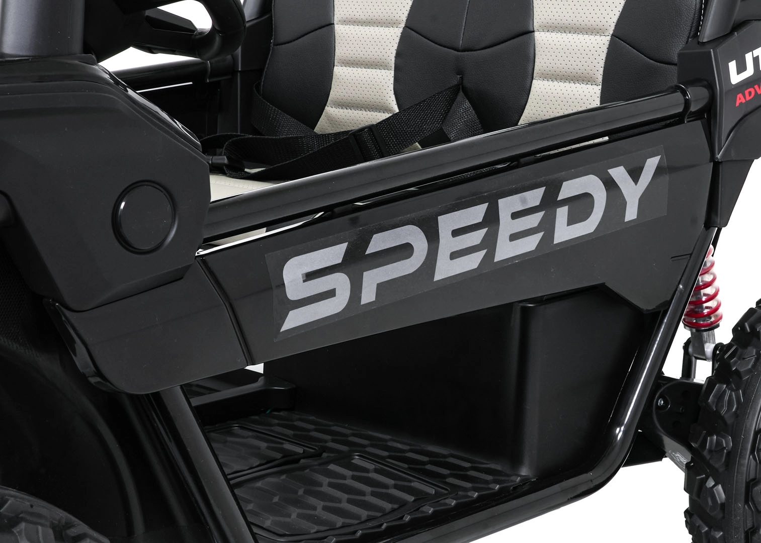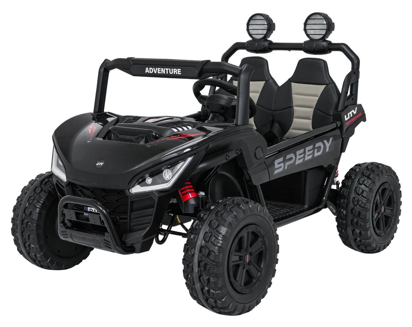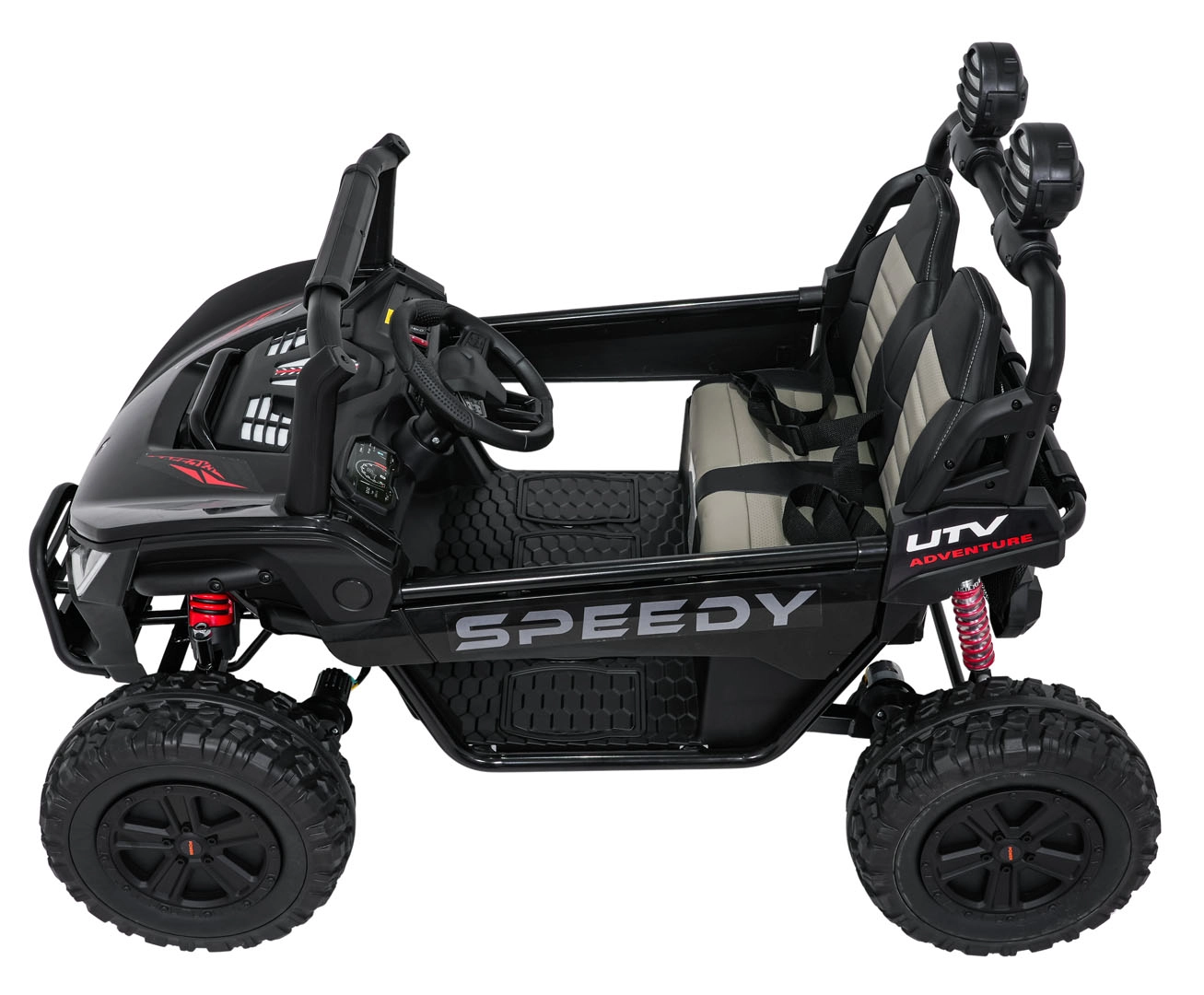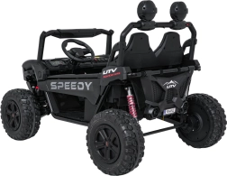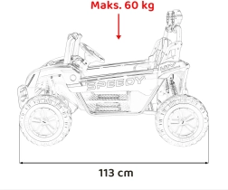Hľadáte odolné a bezpečné detské vozidlo, ktoré zvládne aj náročnejší terén? Táto buggy SPEEDY 4x4 vyniká kombináciou výkonu a komfortu: štyri motory 200 W (spolu 800 W) v sérii 24 V, veľké penové kolesá EVA 31×12 cm, vysoký svetelný profil 19 cm a zadné nastaviteľné tlmiče pre plynulú jazdu. Dve sedadlá s bezpečnostnými pásmi posadia súrodenca aj kamaráta.