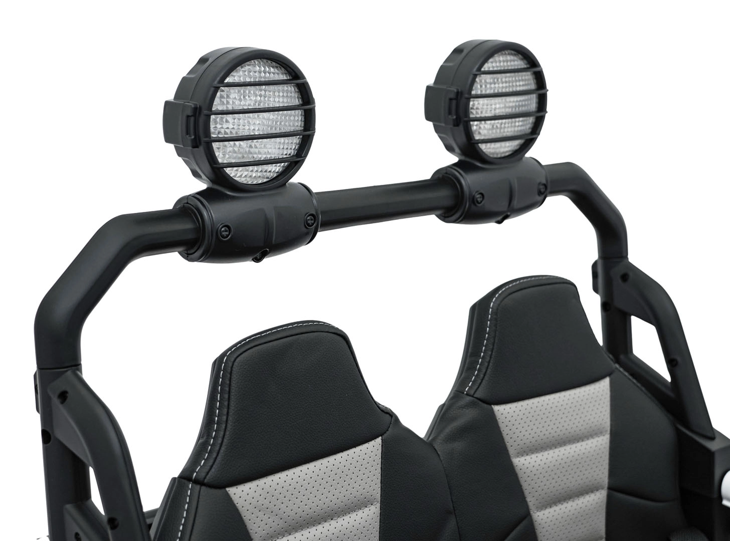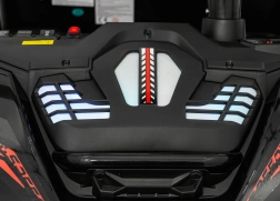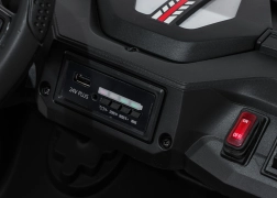 Pre bezpečnú zábavu nechýba plynulý rozjazd, spiatočka a dve rýchlosti, prepínateľné aj cez diaľkový ovládač 2,4 GHz s tromi rýchlosťami a tlačidlom Stop. Svetelnú show zaistia LED predné svetlá, podsvietená kapota a horný svetelný oblúk (napájaný batériami – nie sú v balení). Audio panel poteší MP3, Bluetooth, USB a AUX, navyše sú na volante zvuky a klaksón a predhrané melódie.