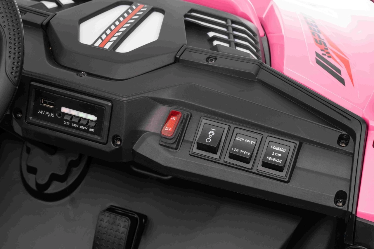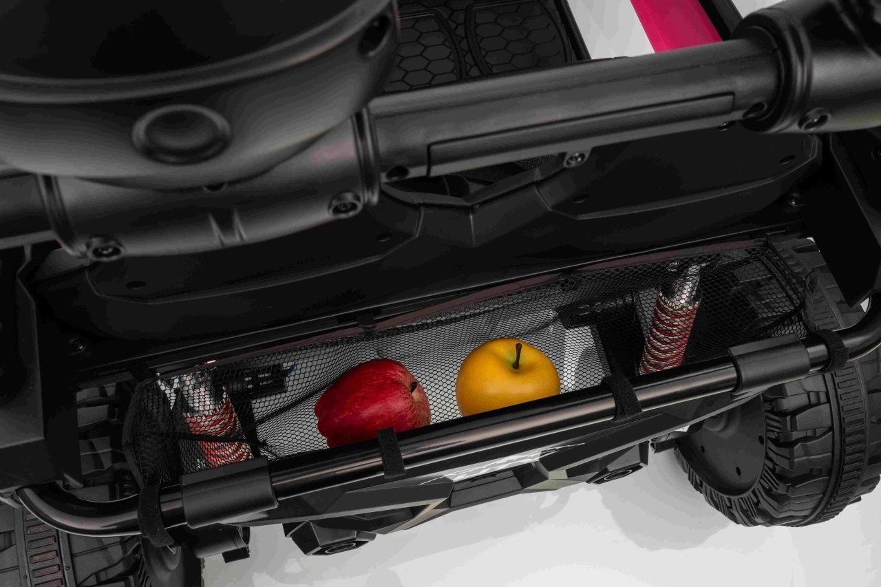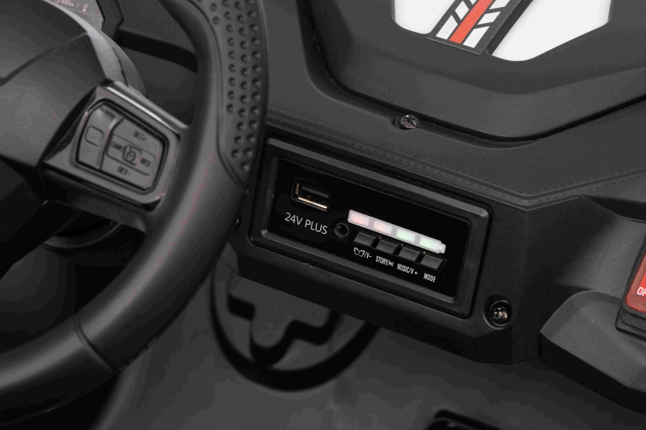 Auto je vybavené moderným ovládaním pomocou diaľkového ovládača s frekvenciou 2,4 GHz, ktorý umožňuje voľbu z 3 rýchlostí a disponuje tlačidlom pre núdzové zastavenie. Navyše auto disponuje piankovými kolami EVA a nastaviteľnými tlmičmi vzadu pre pohodlnú jazdu. Súčasťou vybavenia je i panel audio s možnosťou pripojenia MP3, USB alebo Bluetooth.