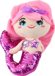 Táto hračka má veľké vyšívané oči, usmiatu tvár, ružové vlasy ozdobené mašľou a efektný chvost pokrytý flitrami. Flitre menia farbu z fialovej na striebornú, keď po nich prejdete rukou, čo deťom prináša radosť a stimuluje ich hmat a predstavivosť.