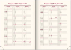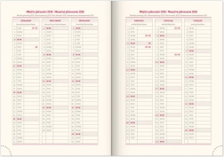 Moderný dizajn s pevnou gumičkou a pútkem na pero. Obsahuje česko-slovenské kalendárium a doplnky v angličtine, nemčine, maďarčine a ruštine.