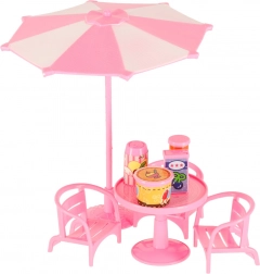 Stolík, stoličky a slnečník vytvoria útulné miesto pre hostí. Ideálne na servírovanie zmrzliny a nápojov.