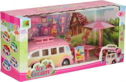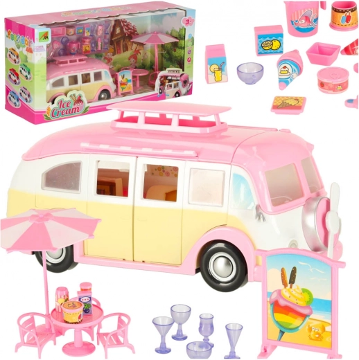 Tento rozkošný zmrzlinový kamper v ružovo-krémových farbách premení každú izbu na malé bistro na kolesách. Deti môžu otvoriť strechu aj dvere, vysunúť markízu a obsluhovať zákazníkov pri stolíku so slnečníkom. Realistické detaily interiéru podnecujú kreatívne príbehy a dlhé hodiny hrania.