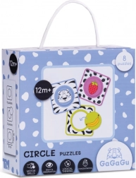 Interaktívne a vzdelávacie puzzle s krúžkom od značky Gagagu poteší najmenších aj dospelých. Ponúka farebné okrúhle dieliky s motívmi ovocia a zvieracích tvárí, ktoré podporujú rozpoznávanie tvarov a predmetov, rozvoj jemnej motoriky a kognitívne zručnosti. Vďaka praktickému krúžku sa puzzle ľahko prenášajú a skladujú, čo ocení každý rodič. Vhodné od 12 mesiacov.