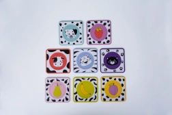 Objavte hravú formu učenia s puzzle Gagagu. Okrúhle doštičky s pestrými ilustráciami ovocia a roztomilých zvieracích tvárí podnecujú detskú zvedavosť, rozširujú slovnú zásobu a posilňujú koordináciu oko–ruka. Odolné materiály zabezpečujú bezpečné a dlhodobé používanie.