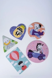 Roztomilé ilustrácie tučniaka, pandy, opičky a ďalších zvieratiek motivujú deti k opakovanému skladaniu a tréningu jemnej motoriky.