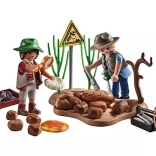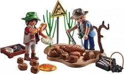 Odhaľte dávne tajomstvá so vzrušujúcou sadou PLAYMOBIL vykopávky! Skryte fosílie ako amonity, trilobity a dinosauřie vajcia v skalách a znovu ich objavte pomocou realistických nástrojov. Pomocou štetcov, kladivka a lupy starostlivo analyzujte svoje nálezy a bezpečne ich uložte do drevenej krabice. S priloženou kamerou môžu paleontológovia zdokumentovať každý vzrušujúci nález. Detailne prepracovaná základová doska s krami a vetvami pozýva k nekonečnému nápaditému skúmaniu. S láskavým dizajnom PLAYMOBIL sa každý výkop stane dobrodružstvom do minulosti!
