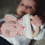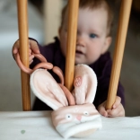 Hryzátko myška je vyrobené z látky s autorskou potlačou od Jitky z Ababu. Je certifikované pre bábätká a spĺňa všetky normy EÚ pre deti od 0 rokov. Táto hračka kombinuje jemnú textilnú tvár zo 100% bavlny s ručne vyrobeným bukovým krúžkom. Bambusové froté, ktoré tvorí zadnú stranu, je z najkvalitnejších materiálov z Francúzska.