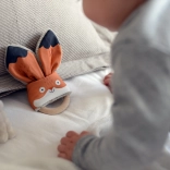 Hračka Hryzadlo Líška od Ababu kombinuje originálny dizajn s bezpečnosťou pre najmenších. Materiály potiahnuté autorskou potlačou sú zo 100% bavlny, s certifikátom pre deti do 3 rokov. Krúžok je z prírodného bukového dreva, ručne vyrobeného na Vysočine.