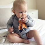 Pri údržbe odporúčame prať uši na 30° a pravidelne vymieňať opotrebovaný krúžok. Kúsadlo dodávame na darčekovom kartóne, čo je ideálne pre darovanie.