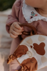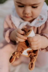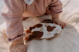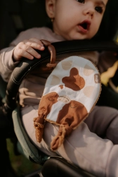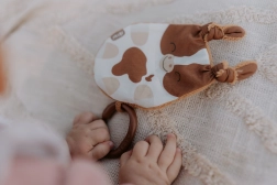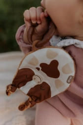 Vyrobené z kvalitných materiálov, hračka Telátko ponúka množstvo zaujímavých prvkov, ktoré rozvíjajú zmysly vašich najmenších. Tvár je z potlačenej látky zo 100% bavlny, vybavená certifikátom pre deti do 3 rokov. Zadná strana z bambusového froté poskytuje mäkký a príjemný povrch.