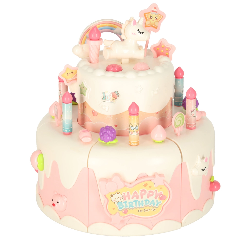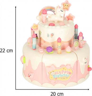 Interaktívna narodeninová torta, ktorá prekvapí deti hudbou a svetlami. Súčasťou je bohaté príslušenstvo a dekorácie, ideálne pre kreatívnu hru.