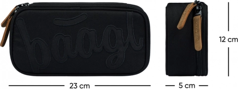 Vyberte si praktický set školských doplnkov od značky BAAGL, ktorý zahŕňa batoh s anatomicky tvarovanými chrbtom, priestorný peračník a univerzálny vrecúško, všetky v elegantnej čiernej farbe.