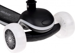 Táto trojkolesová balančná kolobežka podporuje prirodzený rozvoj rovnováhy vďaka systému riadenia náklonom tela (lean‑to‑steer). Nastaviteľná výška riadidiel sa ľahko prispôsobí rastu dieťaťa a zadná nožná brzda sa postará o isté zastavenie. Integrované LED osvetlenie v kolesách, ráme aj nášľape a hudobný modul premenia každú vychádzku na zážitok.