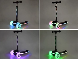 Ľahká a stabilná detská balančná kolobežka s 3 kolesami, nastaviteľnou riadidlami a LED podsvietením ponúka až 20 režimov svetiel a 4 hudobné melódie. Široká, protišmyková platforma, tiché gumené kolieska a lean‑to‑steer systém riadenia zabezpečujú bezpečnú a zábavnú jazdu pre deti od 3 rokov.