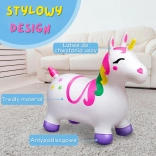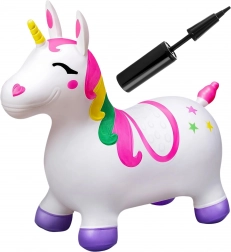 Prinesie domov čarovný svet fantázie s nafukovacím skákacím jednorožcom. Je vyrobený z bezpečných a trvanlivých materiálov a disponuje pohodlnými úchytmi pre bezpečné skákanie. Tento výrobok je vhodný pre deti od 12 mesiacov a maximálne zaťaženie je do 45 kg. Vďaka svojmu výnimočnému dizajnu a širokej základni s protišmykovými nožičkami poskytuje stabilitu a bezpečie.