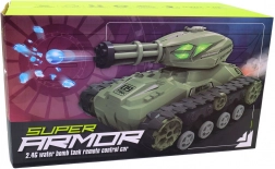 Balenie obsahuje všetko potrebné pre okamžité použitie - tank, ovládač (batérie pre ovládač nie sú súčasťou), USB kábel pre nabíjanie a guličky na efekty. Hračka je určená pre deti od 8 rokov.