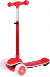 Ľahká a stabilná detská kolobežka s balančným riadením (lean-to-steer), nastaviteľnou riadiacou tyčou a troma kolieskami pre istotu pri jazde. Zaujme LED osvetlením s 20 režimami a 4 hudobnými melódiami, má protišmykovú širokú nášľapnú plochu a zadnú nožnú brzdu pre bezpečné zastavenie.