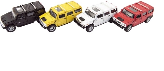 Realistický model Hummer H2 SUV v dĺžke 12 cm prináša poctivé spracovanie, kovovú karosériu (die-cast) a odolné plastové detaily. Vďaka spätnému chodu stačí autíčko natiahnuť dozadu a pustiť – ihneď vyrazí dopredu. V mnohých prevedeniach navyše poteší otváracími dverami, ktoré umocnia zážitok z hry aj vystavenia v zbierke.