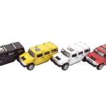 Štýlový model terénneho vozidla Hummer H2 od značky Kinsmart poteší deti aj zberateľov. Kombinuje kovové a plastové diely, má spätný chod, často aj otváracie dvere a dĺžku 12 cm. K dispozícii je v 4 farebných variantoch a je vhodný od 3 rokov.