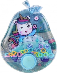 Vodná hra nevyužíva žiadne batérie, pracuje iba na základe tlaku, čo rozvíja zručnosti a pohybovú koordináciu dieťaťa. Motív pestrých jednorožcov a priesvitný obal s trblietavým efektom upútajú pozornosť a motivujú k hre. Je to perfektný nápad na drobný darček alebo odmenu v škôlke. Predáva sa jednotlivo a vzor je vyberaný náhodne.