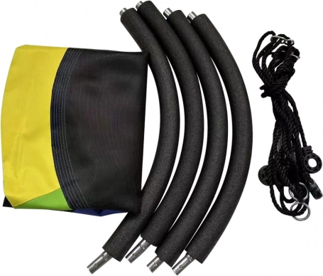 Lanami z hrubého polyetylénu sú vybavené kovovými krúžkami a systémom nastavenia výšky, čo umožňuje ľahké prispôsobenie hojdačky potrebám dieťaťa a dostupného priestoru. Vďaka možnosti jedného alebo dvoch závesných bodov, sa hojdačka nielen kýva dopredu a dozadu, ale taktiež sa môže otáčať okolo svojej osi.