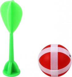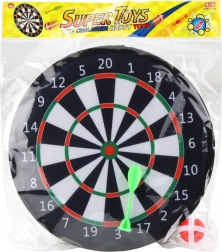 Súčasťou sady je tmavá terčovina o priemere 28 cm, jedna šipka a jeden míček, obe s koncovkou na suchý zips. Terč má čitateľné numerácie a farebné zóny, ktoré nielen uľahčujú učenie a zlepšujú reflexy, ale tiež sa uplatnia pri hraní vnútri aj vonku.