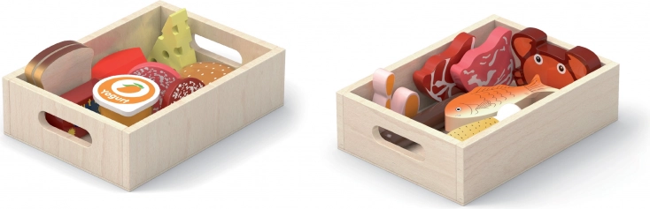 Drevený set potravín VIGA na hru na kuchára. Rozvíja kreativitu a motoriku detí. Bezpečný a ekologický.